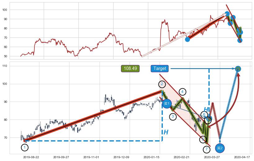 ➢ 收盘价(2020-02-05: 90.91 )→再次回踩→第一根k线低点(2020-01-24: 88.83 )