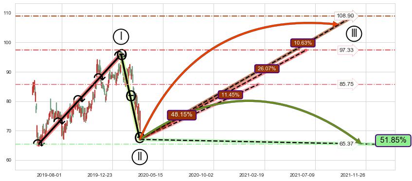 ➢ 大趋势走坏(跌破5浪起点位置)概率51.85%
