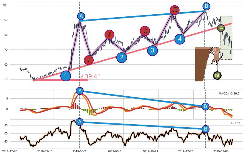 ✂️ 2019-01-29-2020-03-11上升趋势存在反转[风险],其原上升趋势的支撑位(87.61)已破位[强阻力信号],原上升趋势角度: 39.4˚