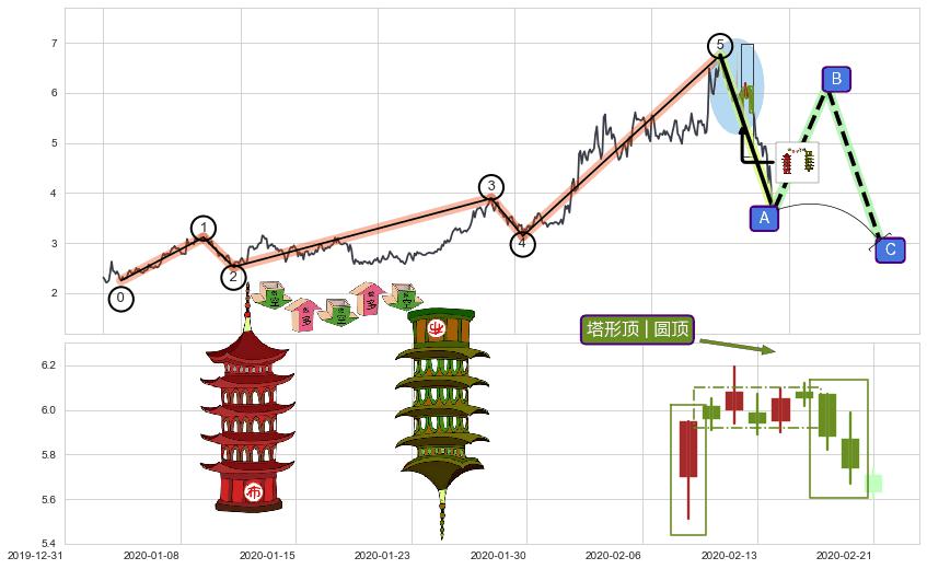 ➣ 收盘价(2020-01-13: 6.48 )→回踩→第一根k线低点(2020-01-07: 6.15 )