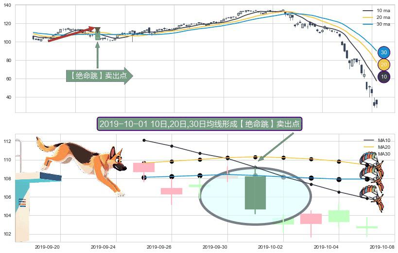 形态多维评估: ⚀ 2019-10-01日显现 10日-20日-30日均线 【绝命跳】卖出点 看空信号,后市看跌,卖出