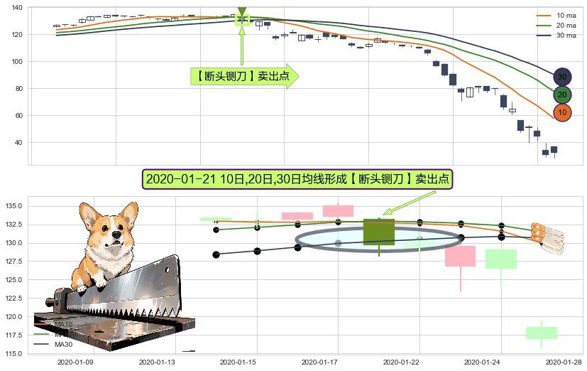 形态多维评估: ⚀ 2020-01-21日显现 10日-20日-30日均线 【断头铡刀】卖出点 看空信号,后市看跌,卖出