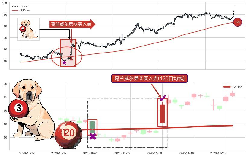 ⚀ 2020-11-09-日显现 葛兰威尔均线 120日均线 第③买入点 上升趋势的中继信号,后市看涨,买进信号
