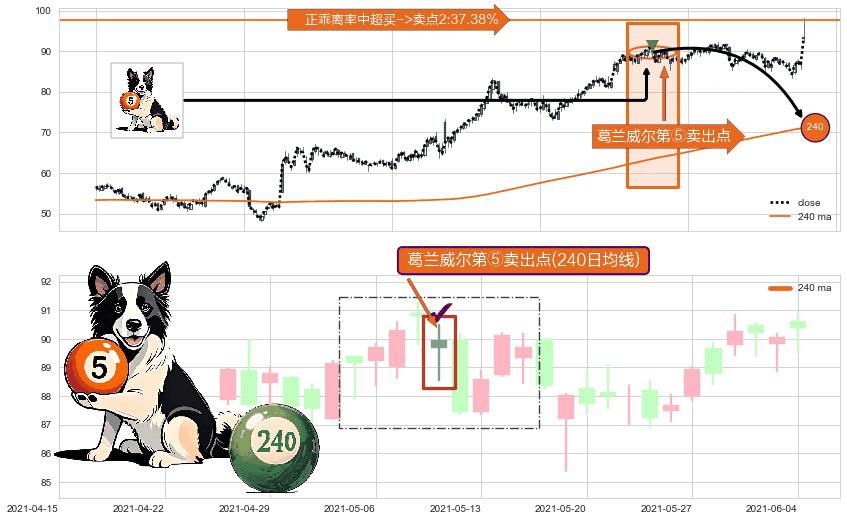 ⚀ 2021-05-11-日显现 葛兰威尔均线 240日均线 第⑤卖出点 上升趋势均值回复的短线回落信号,后市看跌,卖出信号