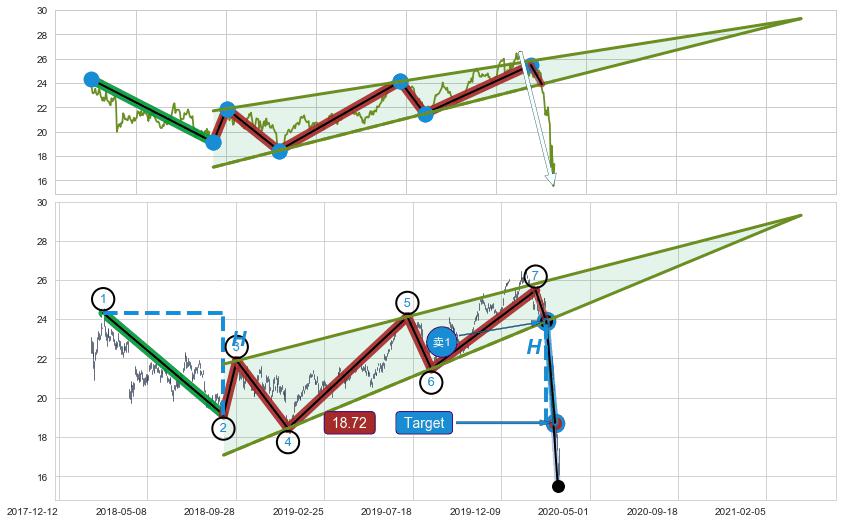 ➢ 【卖1】: 激进型 卖点→(2020-02-24: 23.90 )形成突破升🚩楔型【整理】形态