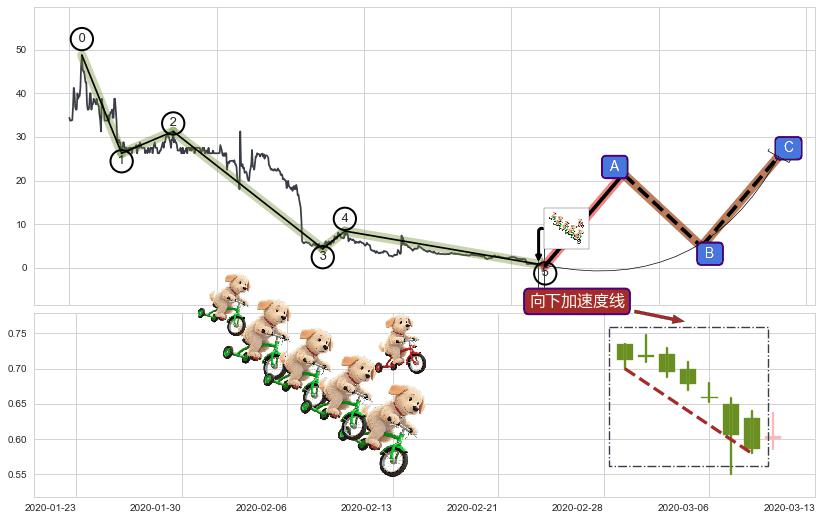 | 2 🅚:【高山滑雪】买入点 ➕ 🌊:波浪理论猜想下跌浪5已形成,猜想后续形成abc反弹上涨(均值回复) ☞ 看多信号 ⇥ 【均线】交织【图形】⇥ 综合量化分数: 52 | > |