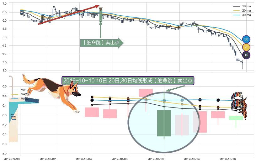 形态多维评估: ⚀ 2019-10-10日显现 10日-20日-30日均线 【绝命跳】卖出点 看空信号,后市看跌,卖出