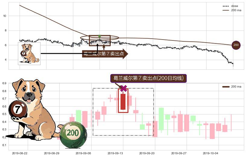 形态多维评估: ⚀ 2019-09-13-日显现 葛兰威尔均线 200日均线 第⑦卖出点 下降趋势的中继信号,后市看跌,卖出信号
