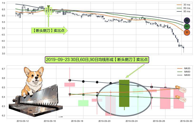 形态多维评估: ⚀ 2019-09-23日显现 30日-60日-90日均线 【断头铡刀】卖出点 看空信号,后市看跌,卖出