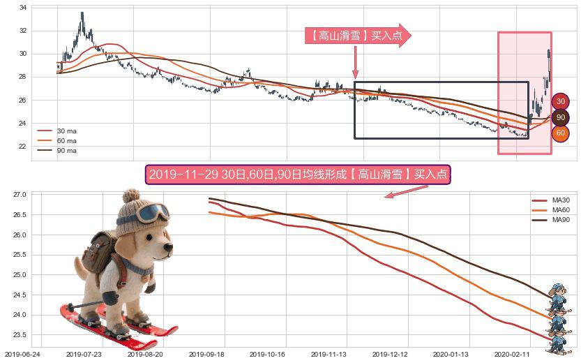⚀ 2019-09-11日-2020-02-21日显现 30日-60日-90日均线 【高山滑雪】买入点 看多信号,后市看涨,买入
