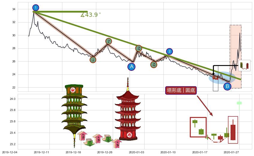 | 2 🅚:塔形底 | 圆底 ➕ 🎢:葛兰威尔第①买入点买入点信号形成后,猜想后续下跌趋势反转上涨趋势(均值回复) ☞ 看多信号 ⇥ 【均线】交织【🅚线】⇥ 综合量化分数: 51 | > |