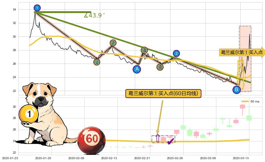 ⚔️ 2018-12-24-2020-03-11下跌趋势存在反转上涨[机会],其原下跌趋势的阻力位(23.22)已被突破[强支撑信号],原下跌趋势角度: 43.9˚