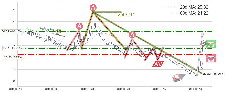 ♘ 支撑价格位26.50,可信任强度75.16%,距离最后交易2020-03-13形成的收盘价格27.54相差 -3.77%