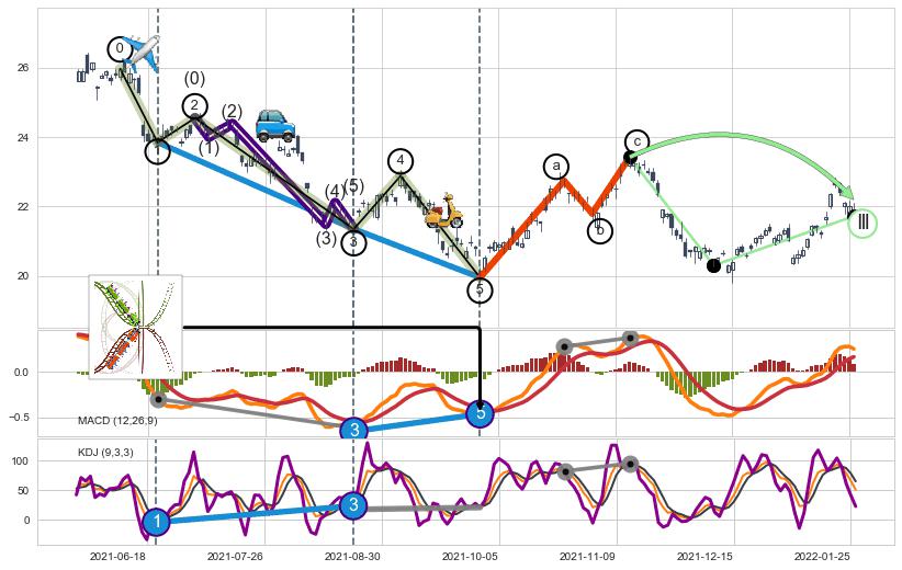 ➢ a,c调整浪MACD, RSI, KDJ走势都【未出现】背离,abc走势延续, 5浪反转概率增强