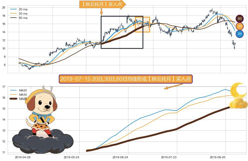 形态多维评估: ⚀ 2019-05-30日-2019-08-26日显现 20日-30日-60日均线 【烘云托月】买入点 看多信号,后市看涨,买入