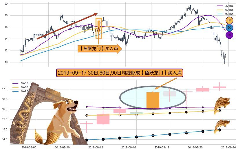 形态多维评估: ⚀ 2019-09-17日显现 30日-60日-90日均线 【鱼跃龙门】买入点 看多信号,后市看涨,买入