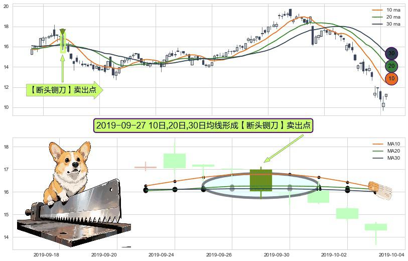形态多维评估: ⚀ 2019-09-27日显现 10日-20日-30日均线 【断头铡刀】卖出点 看空信号,后市看跌,卖出