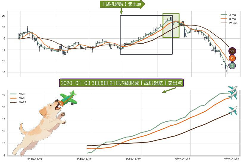 形态多维评估: ⚀ 2019-12-11日-2020-01-24日显现 3日-8日-21日均线 【战机起航】卖出点 看空信号,后市看跌,卖出