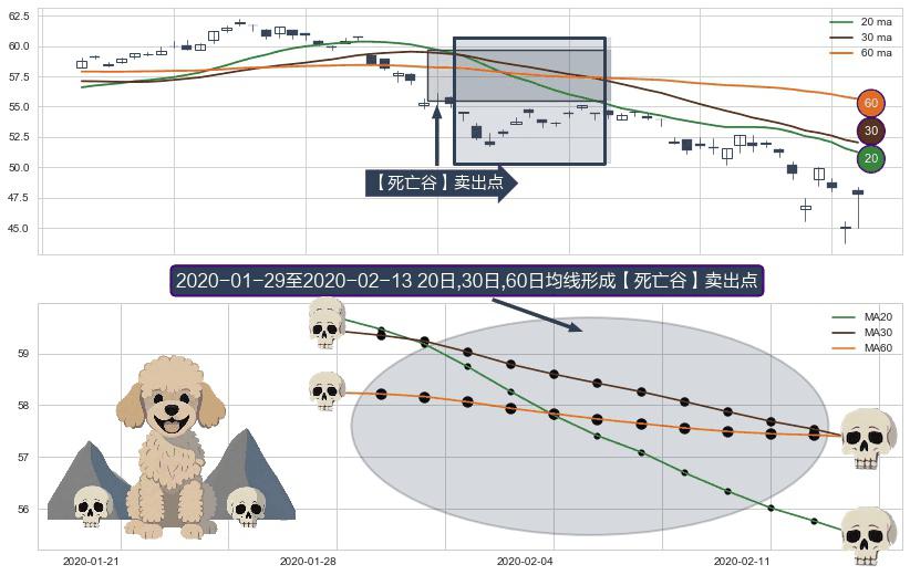 形态多维评估: ⚀ 2020-01-30-日至2020-02-13-日显现 20日-30日-60日均线 【死亡谷】卖出点 看空信号,后市看跌,卖出