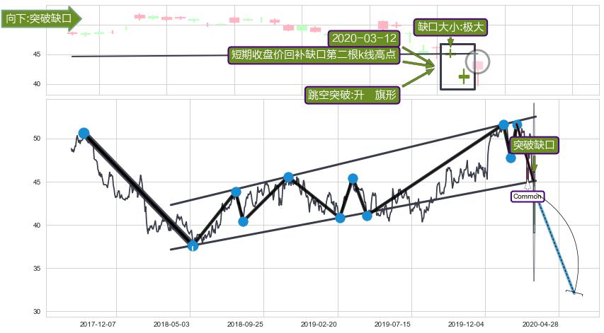 ➢ 2020-03-12形成:向下跳空【突破】缺口