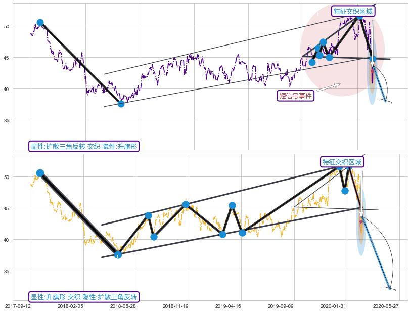 | 3 🅚:【战机起航】卖出点 ➕ 📐:扩散三角反转下行突破支撑位破位, 猜想持续下沉下跌,被突破的支撑位已变为阻力位 ☞ 看空信号 ⇥ 【均线】交织【图形】⇥ 综合量化分数: 48 | > |