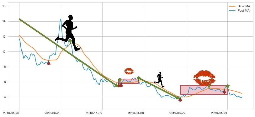 2018-01-26至2019-01-09 慢线与快线呈空头排列, 慢线与快线接触少,无缠绕