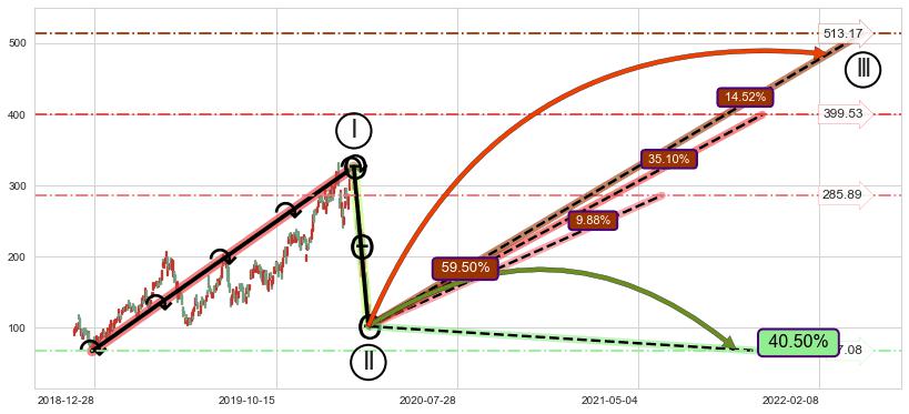 ➢ 循环浪继续向上【最高】位置(2022-04-14, 513.17),匹配聚类样本比例24.40%, 可能性概率14.52%