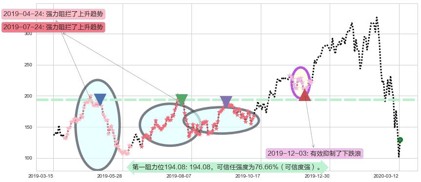 ♘ 阻力价格位194.08,可信任强度76.66%,距离最后交易2020-03-13形成的收盘价格129.92相差 +49.39%
