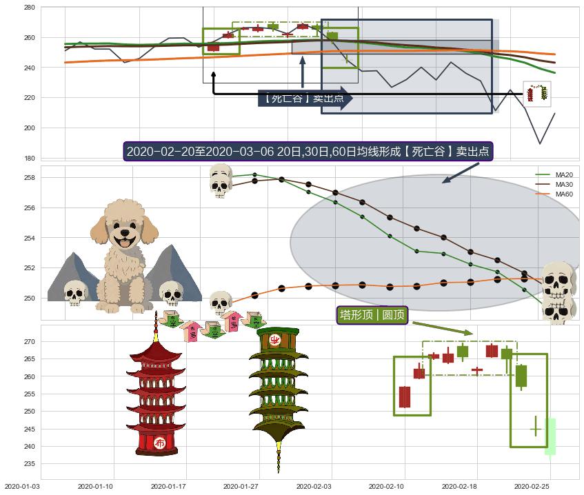 ➢ 收盘价(2020-02-24: 244.62 )→再次回踩→第一根k线高点(2020-02-11: 263.59 )