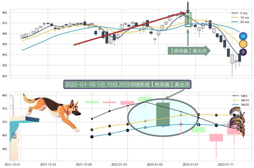 ⚀ 2022-01-05日显现 5日-10日-20日均线 【绝命跳】卖出点 看空信号,后市看跌,卖出