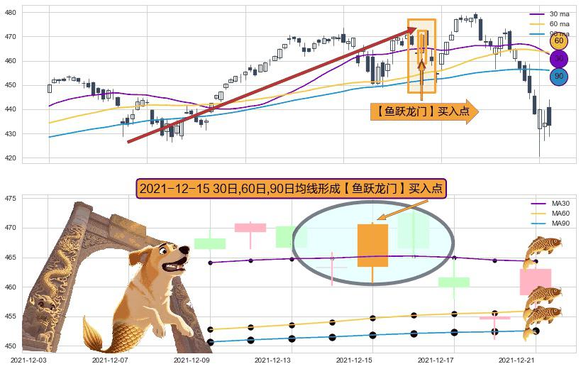 ⚀ 2021-12-15日显现 30日-60日-90日均线 【鱼跃龙门】买入点 看多信号,后市看涨,买入