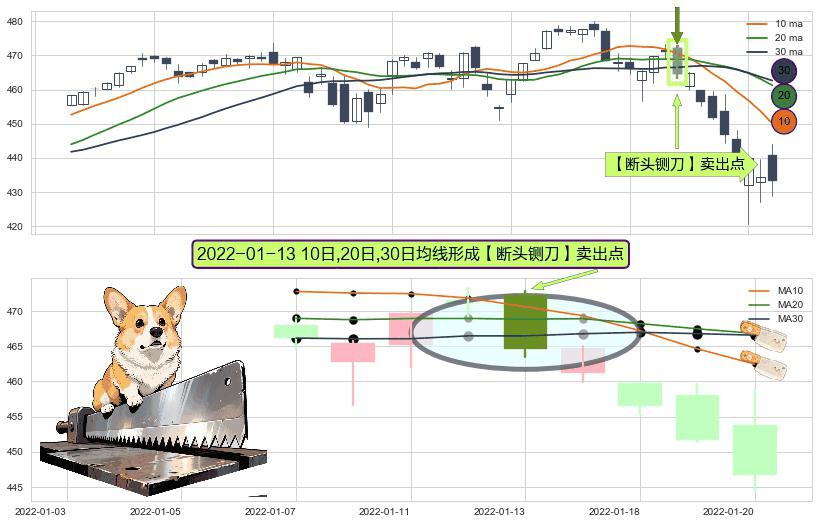 ⚀ 2022-01-13日显现 10日-20日-30日均线 【断头铡刀】卖出点 看空信号,后市看跌,卖出
