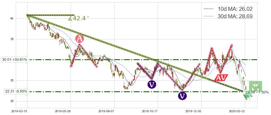 ♘ 阻力价格位30.01,可信任强度64.54%,距离最后交易2020-03-13形成的收盘价格22.43相差 +33.81%
