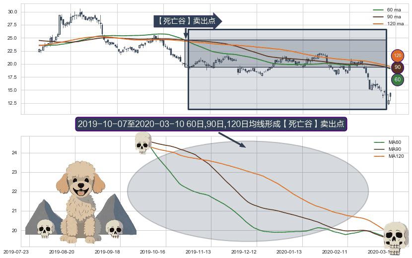 ⚀ 2019-10-08-日至2020-03-10-日显现 60日-90日-120日均线 【死亡谷】卖出点 看空信号,后市看跌,卖出