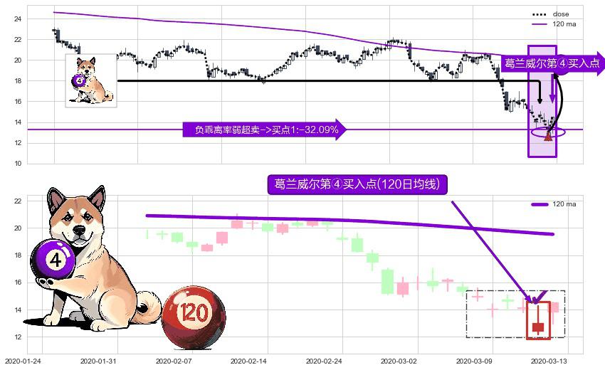 ⚀ 2020-03-12-日显现 葛兰威尔均线 120日均线 第④买入点 下降趋势均值回复的短线反弹信号,后市看涨,买进信号