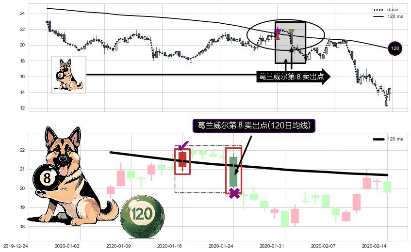 ⚀ 2020-01-24-日显现 葛兰威尔均线 120日均线 第⑧卖出点 下降趋势的中继信号,后市看跌,卖出信号