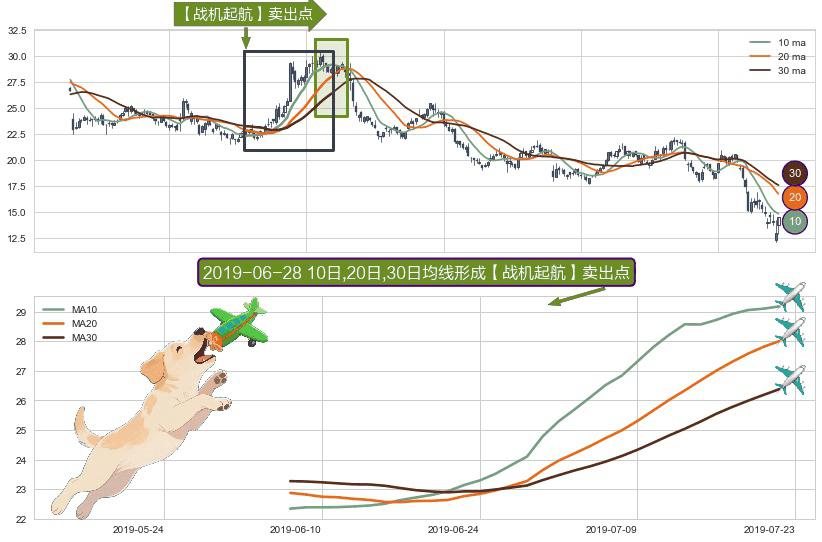 ⚀ 2019-06-06日-2019-07-22日显现 10日-20日-30日均线 【战机起航】卖出点 看空信号,后市看跌,卖出