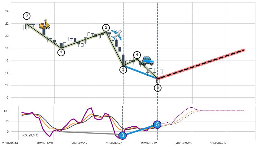 ➣ 第三,五驱动浪端点:【KDJ】走势出现【常规背离 & 反转信号】背离程度99.00%,背离夹角角度82.5˚,背离程度较大