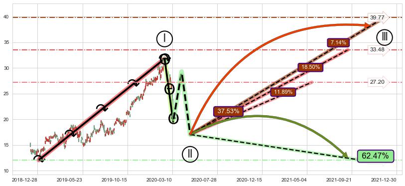 ➢ 循环浪继续向上【最低】位置(2021-05-19, 27.20),匹配聚类样本比例31.67%, 可能性概率11.89%