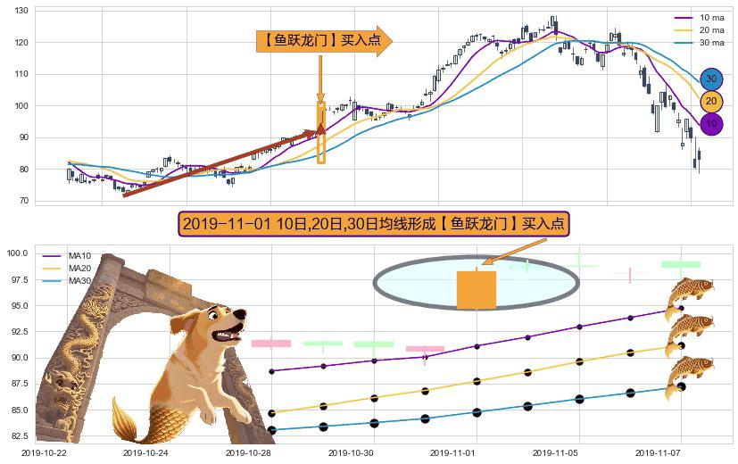 ⚀ 2019-11-01日显现 10日-20日-30日均线 【鱼跃龙门】买入点 看多信号,后市看涨,买入