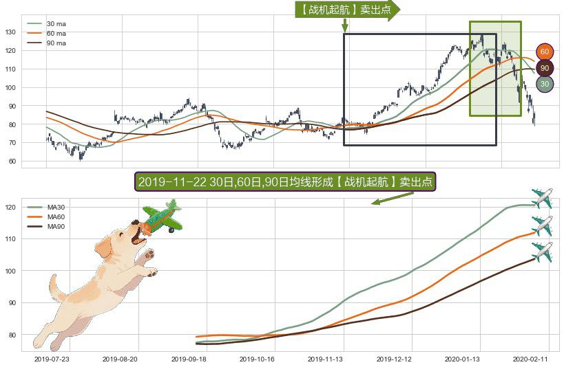 ⚀ 2019-09-13日-2020-02-05日显现 30日-60日-90日均线 【战机起航】卖出点 看空信号,后市看跌,卖出