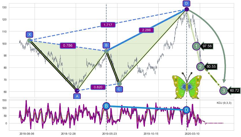 ➣ 已完成【蝴蝶】形态起点X: 2018-07-19, 终点D: 2020-01-23, 共381交易日