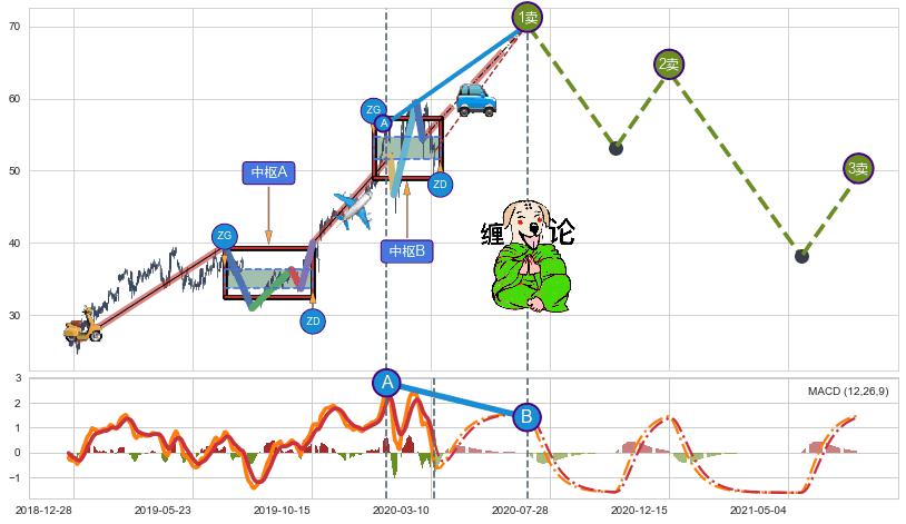 ➣ 【未完成】缠论 起点:2019-01-04, 完成第1中枢A,完成第2中枢B,到达2020-03-13