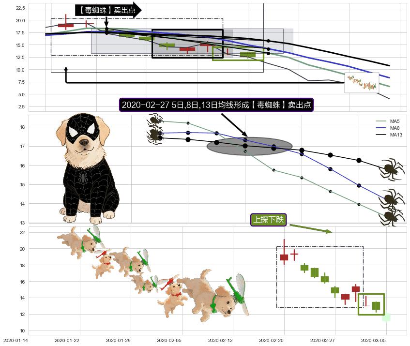 | 4 🅚:三只乌鸦 ➕ 🎢:【毒蜘蛛】卖出点均线组合卖出点信号形成后,猜想三条均线周期内的交易者都看空后市,持续下跌 ☞ 看空信号 ⇥ 【均线】交织【🅚线】⇥ 综合量化分数: 49 | > |