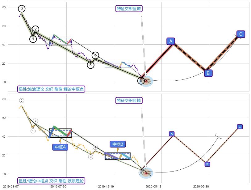 ➣ 【未完成】缠论 起点:2019-04-05, 完成第1中枢A,完成第2中枢B,到达2020-03-13