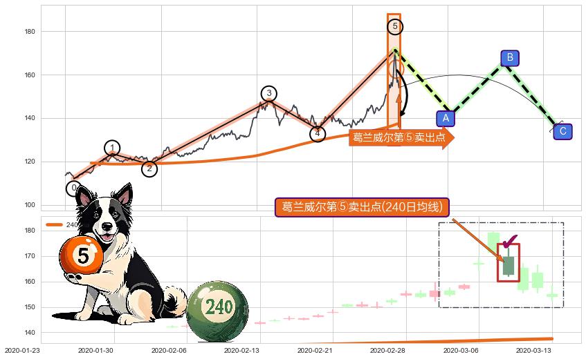 ➢ 收盘价(2020-03-13: 153.94 )→再次回踩→第一根k线高点(2020-03-06: 169.33 )