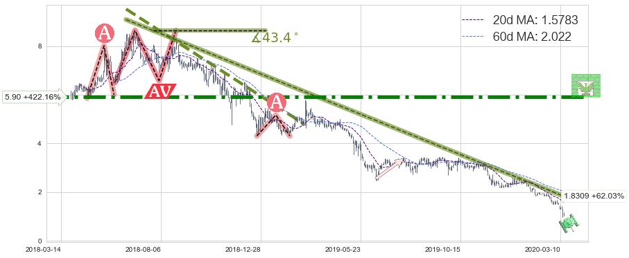 ♞ 20日均线:1.5783,60日均线:2.022→ 快线<慢线