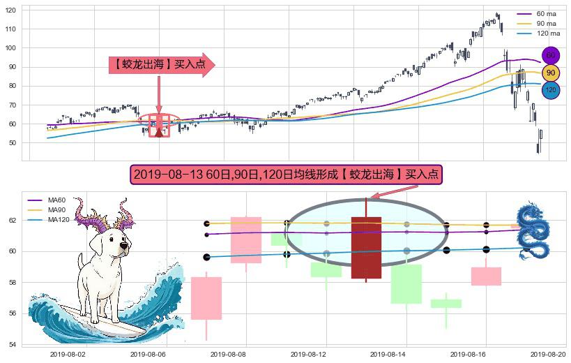 ⚀ 2019-08-13日显现 60日-90日-120日均线 【蛟龙出海】买入点 看多信号,后市看涨,买入