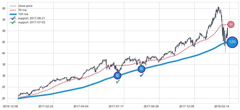 ⚁ MA60和MA90走势平行,且始终保持在短距离内,MA120始终在短中期均线下方,与短中期均线保持一定的距离,微微上行