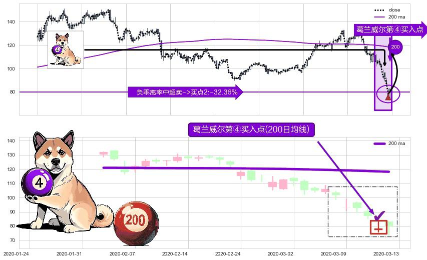 ⚀ 2020-03-12-日显现 葛兰威尔均线 200日均线 第④买入点 下降趋势均值回复的短线反弹信号,后市看涨,买进信号